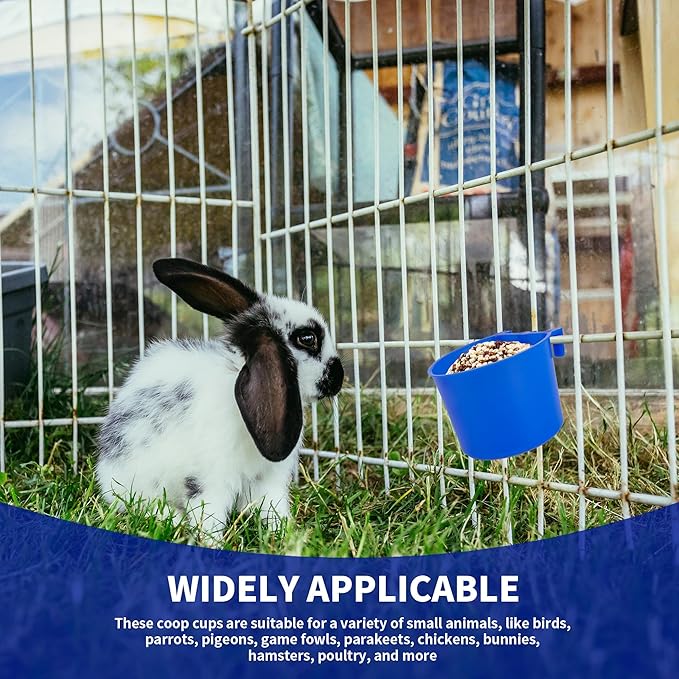 - 【Widely Applicable】 Designed for feeding numerous small animals or poultry,these coop cups are suitable for a variety of small animals, like birds, parrots, pigeons, game fowls, parakeets, chickens, bunnies, hamsters, poultry, and more.