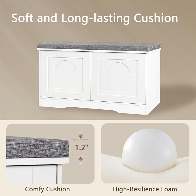 - 【Effortless Push-to-open Door 】Feature a fully enclosed design with a push-to-open mechanism, keeping shoes clean and tidy while avoiding accidental bumps against door handles during use. Reasonable height and soft cushion let you change shoes by sitting on the bench more comfortable without bending down or squatting