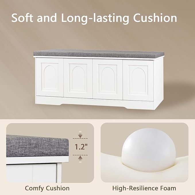 - 【Effortless Push-to-open Door】Feature a fully enclosed design with a press-to-open mechanism, keeping shoes clean and tidy while avoiding accidental bumps against door handles during use. Reasonable height and soft cushion let you change shoes by sitting on the bench more comfortable without bending down or squatting