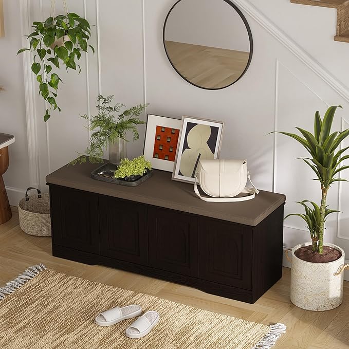 - 【Effortless Push-to-open Door】Feature a fully enclosed design with a press-to-open mechanism, keeping shoes clean and tidy while avoiding accidental bumps against door handles during use. Reasonable height and soft cushion let you change shoes by sitting on the bench more comfortable without bending down or squatting