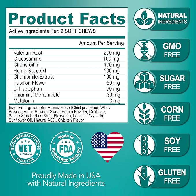 - Made in The U.S.A, Vet Formulated: Our dog calming chews - anxiety relief treats are made in the USA and formulated by Vets in an FDA-registered facility that meets the highest quality standards.