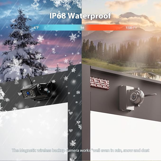 - 🚀Easy Installation: Simply plug and play the 10" Full HD IPS monitor. Strong magnetic mount lets you install this wireless backup camera in seconds—no drilling and no permanent wiring required, making it ideal for temporary setups or multi-vehicle use. NOTE:Limited to Metal Surfaces – The magnetic base won’t stick to fiberglass, plastic, or non-magnetic materials