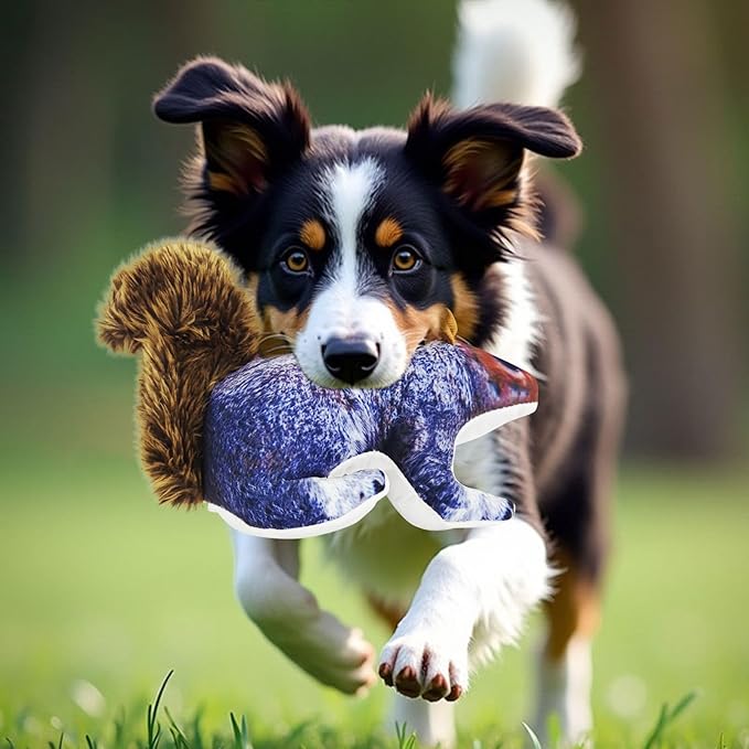 - 【squirrel dog toy】Plush squirrel toy features a realistic design with furry tail and built-in squeaker to keep dogs engaged and entertained, Playtime keeps dogs physically fit and mentally sharp. Squeaky dog toy is great for fetch, and chewing. Our squeaky plush dog toy can be tossed, so you can train them efficiently. This squirrel strong dog toy positively enhance the relationship between you and your dogs. Enjoy more fun playing with your furry friend
