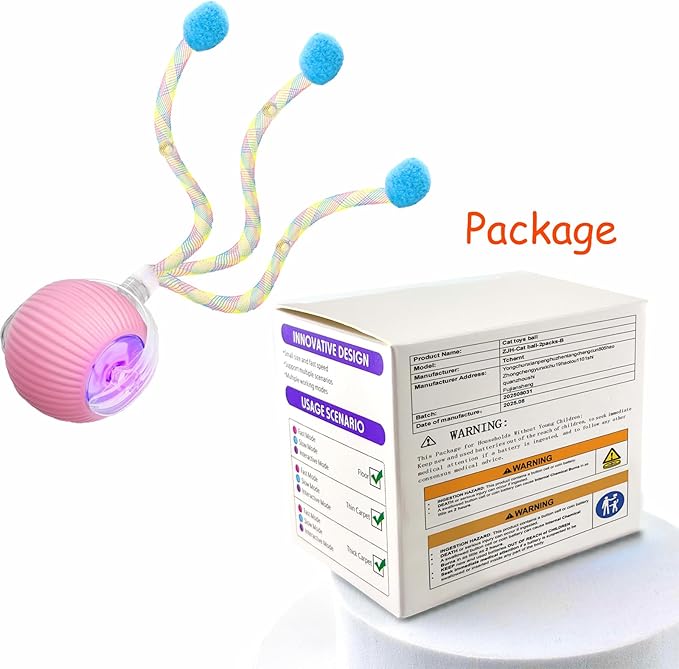 - Pet Ball For Cats of All Kinds: Press and hold 2s for fast mode (blue light), ideal for active adult cats, rolls on carpet. Short press to toggle modes via light hues: slow mode (purple light) for timid kittens,interactive mode (yellow light) for curious ones. For first use kitten toys, opt for slow mode to help your furry pal acclimate. Cat ball toy with tail