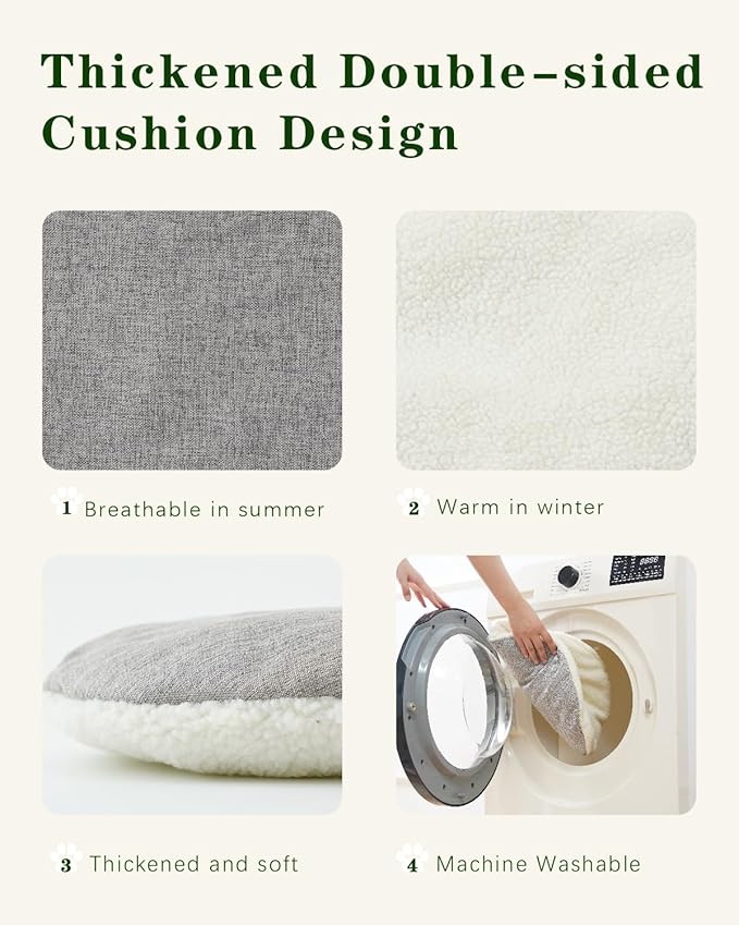 - Soft Material: The large cat bed is handwoven with durable synthetic rattan, providing a soft, shining through and airy space for cats, and the cat bed cave is equipped with one double-sided pad, which is airy breathable in summer and soft warm in winter