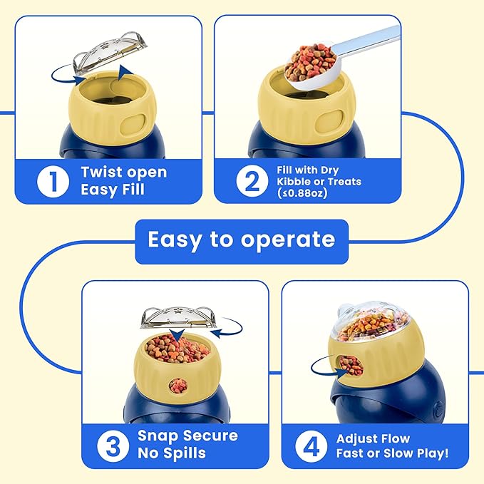 - Adjustable Treat Dispensing: Twist the toy to change the hole size with the adjustable cat puzzle feeder. Controls treat release amount to promote healthy digestion—ideal for fast eaters. Works with dry treats or kibble (under 0.87") for cats and small dogs to make playtime easier or more challenging