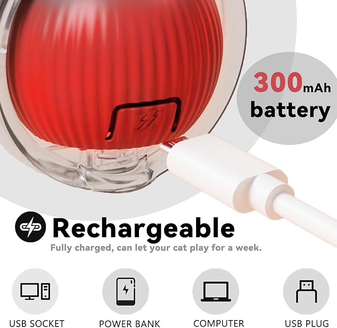 • Motion Activation and Automatic Shutdown: After turning on, the cat toy ball automatically enters the interactive state, and intelligently switches to standby mode after playing with the cat for 5 minutes. When the cat pats or touches it again, it will be immediately reactivated and start a new round of 5 minutes of interaction. The cat ball will automatically shut down if it is not awakened after 30 minutes in standby state