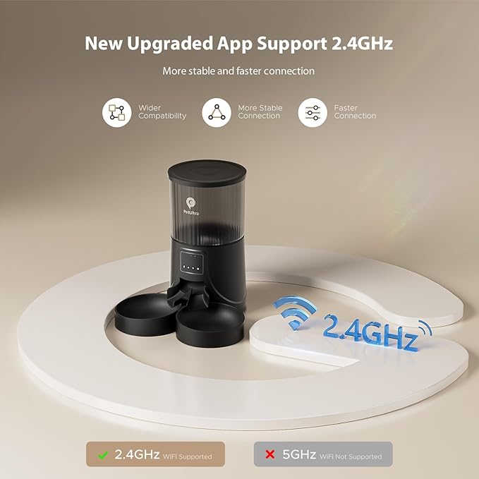- Remote APP Control & Scheduled Feeding: With our WiFi-enabled automatic cat feeder for 2 cats, you can control and schedule your cats' meals from anywhere using your smartphone(Only support 2.4Ghz WIFI). Ensure your pets are fed on time, even when you're not at home. Set up feeding schedules to maintain your cats' diet routine effortlessly (1-10 meals per day,1-20 portions per meals)