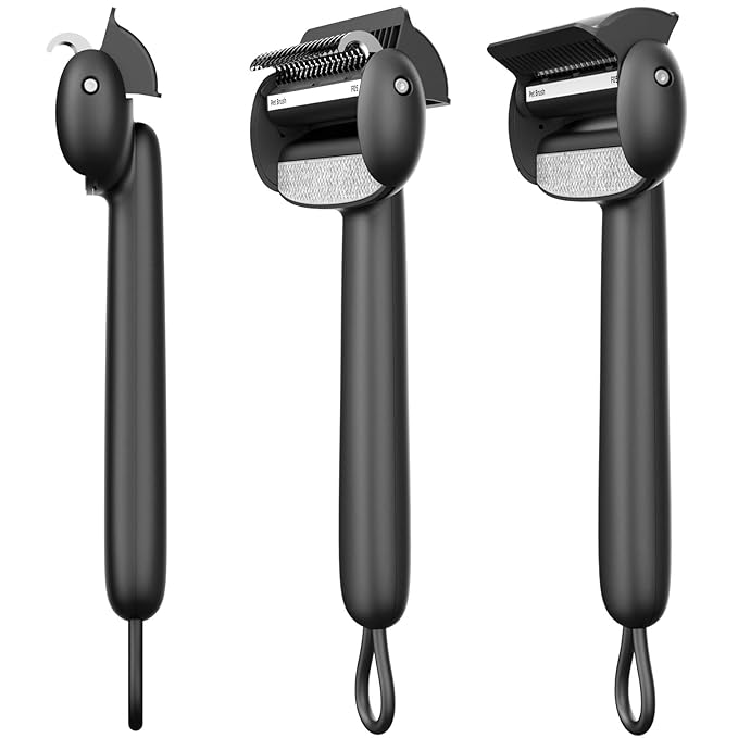 Self Cleaning Grooming Brush for Shedding Pets Rake Gently Removes Loose Undercoat Mats Tangled (Black)