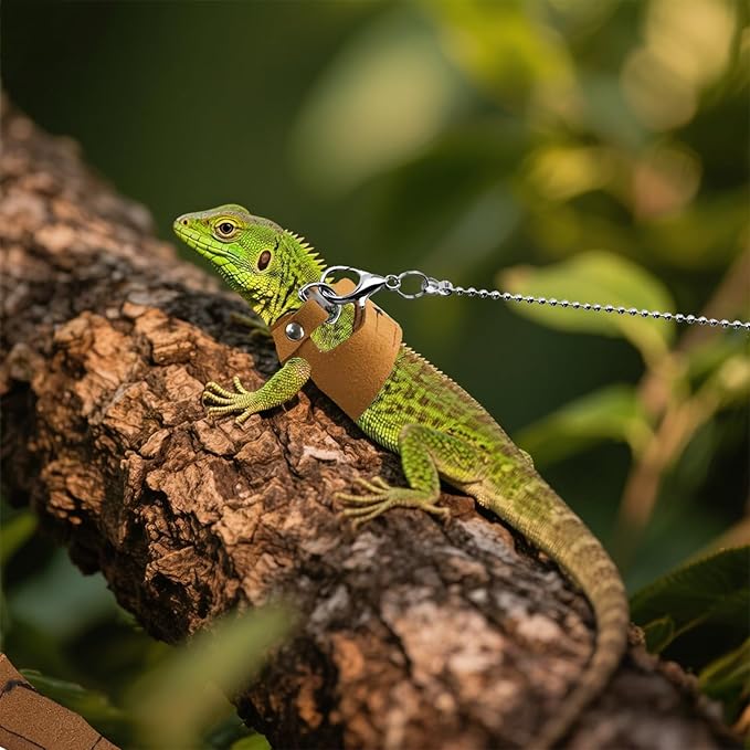 - High Quality Material: Bearded Dragon Harnesses are made of soft leather with delicate craftsmanship, no feeling of restraint.Designed to reducing tugging and pulling on your pet's neck and keep your pet safe and comfortable.Provide a full protection in chest and neck when walking your pet, prevent injuries and ensure safety of pet.