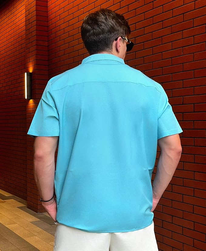- VERSATILE FIT: Regular fit design with short rolled sleeves and straight hemline works perfectly both tucked or untucked for casual occasions