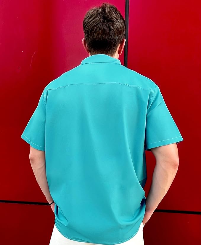 - CLASSIC FEATURES: Traditional collared neck with button-front closure, short sleeves, and regular fit design suitable for various body types