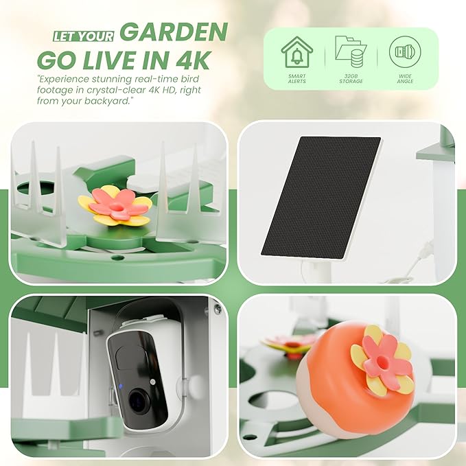 - 【Easy Setup, Sharing & Ideal Gift Choice】: Install quickly on a balcony, backyard, garden, or stand using included mounts. This balcony bird feeder and bird feeder for balcony doubles as a birdhouse camera, letting you save photos and videos to the 32GB SD card or cloud. Its sleek sage green design makes a perfect outdoor bird house and one of the best bird feeders with camera for outdoors for birdwatchers.