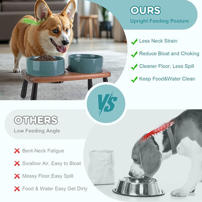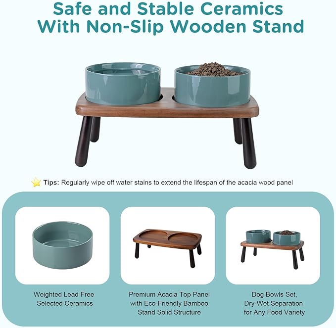 - Modern Design Meets Everyday Convenience – A aesthetic fusion of high quality ceramic and durable acacia wood and eco bamboo creates the elevated dog bowls that blends effortlessly with any home decor. Multiple colors and two different functional sets avaliable to fit the different home decor and pet's needs,The bowl tolerates microwave reheats for warm meals and slides straight into the dishwasher for easy clean, while the durable stand wipes clean in seconds—ideal for any busy pet parents