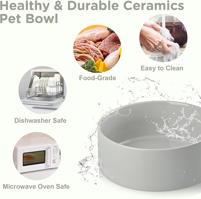 - Lead-Free Ceramic Pet Bowls - 8.3" Ceramic Dog Bowls with 60 OZ Capacity Fired at high temperature with a food‑grade glaze that contains zero lead or cadmium, these non‑porous bowls help keep meals tasting fresh, rinse clean in seconds, and both MICROWAVE SAFE and DISHWASHER SAFE