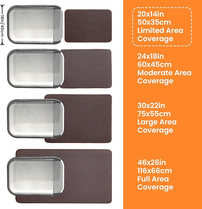 - Double Layer Honeycomb Structure: The top layer with holes captures all types of litter including crystal, clay, tofu and more, letting it fall into the waterproof bottom layer for easy cleanup. Simply pick up the litter catcher mat, pour the litter back into the box and reuse it. This smart design reduces litter waste and simplifies your daily cleaning, making it an essential cat supply.