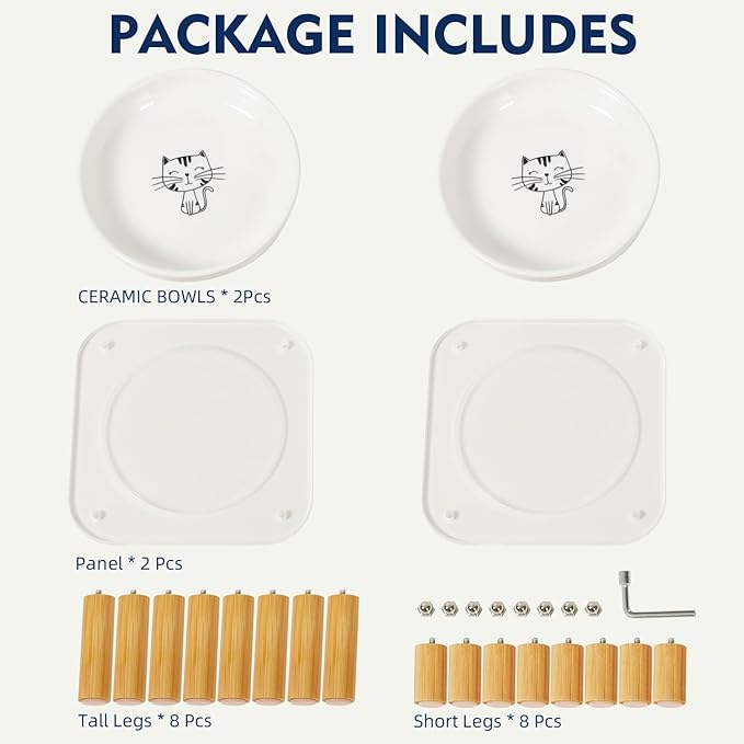 - 【ADJUSTABLE HEIGHTS TO SUIT DIFFERENT CATS】Comes with two sets of interchangeable legs, raising the cat food bowls to either 4.13" (10.5cm) or 2.95" (7.5cm). The adjustable height reduces strain on your cat’s neck and joints, ideal for cats of different sizes or ages.