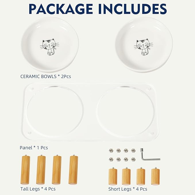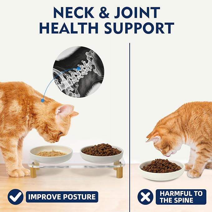 - 【ADJUSTABLE HEIGHT TO SUPPORT NECK & DIGESTION HEALTHEquipped with two sets of interchangeable legs to elevate the bowls to either 10.3cm (4.05") or 7.3cm (2.87"). Improves posture and digestion, especially helpful for kittens, flat-faced breeds, and senior cats.