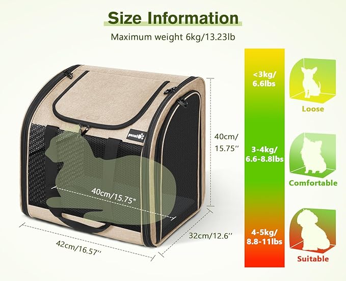 Pecute Cat Backpack with Widened Interior Space, Upgraded Dog Backpack Carrier with Various Ways to Carry, Pet Backpack with Breathable Mesh, Pet Travel Carrier with Soft Padded,Khaki