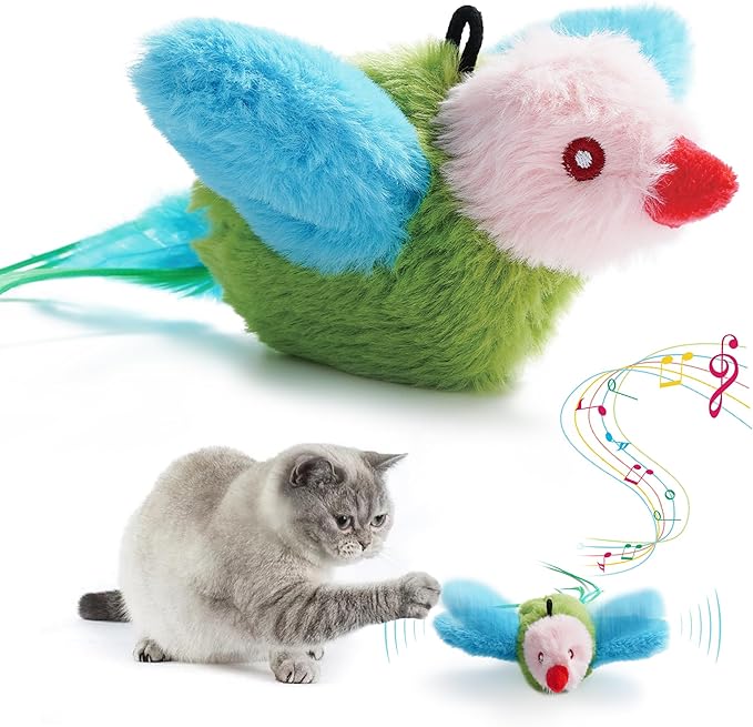 - 【Interactive Cat Toy with Realistic Motion & Sound】 - Engages your cat's natural hunting instincts with lifelike flapping wings and exciting chirping sounds triggered by touch. Keeps indoor cats active and mentally stimulated, providing hours of interactive fun