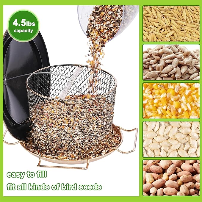 - Durable Bird Feeder: All metal bird feeder for outside, sturdy structure is chew proof, help thwart squirrel damage, save your of bird feeding costs. Powder-coated finish help to resist rust, making bird feeder last longer when used outdoors.