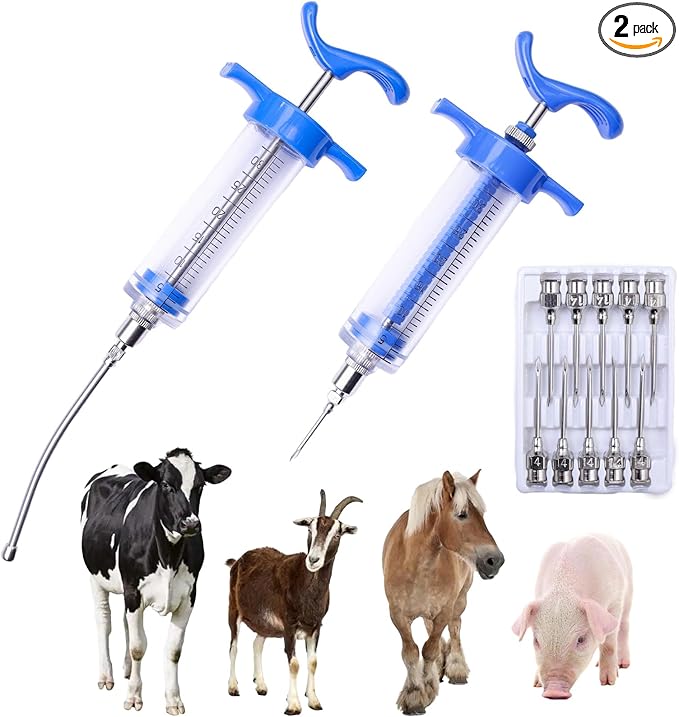 2Pcs 30ML Livestock Syringe, Reusable Adjustable Goat Drench Syringe, with 1 Drench Nozzle 10 Needles, Suitable for Medium And Large Poultry Such As Pigs, Sheep, Cattle, Horses, Etc