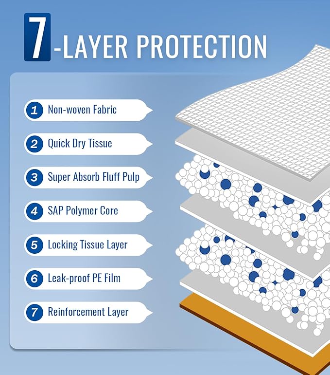- DIAMOND QUILTED & SKIN-FRIENDLY TOP SHEET - The soft, quilted top layer is gentle on sensitive skin. Unlike some chucks pads disposable adult options, our bed pads disposable adult are latex-free and devoid of harsh dyes, providing a comfortable, non-irritating barrier for a restful night's sleep.