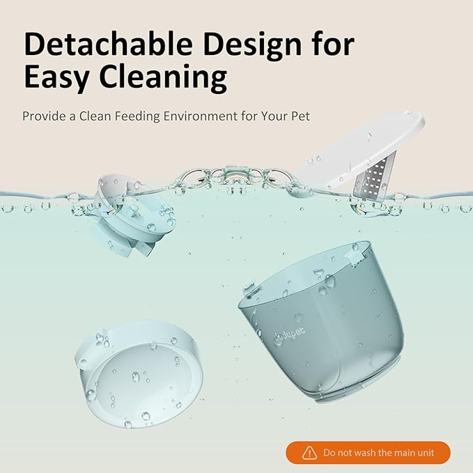 - 【User Friendly Operation】The auto pet feeder with Intuitive LCD screen makes setup and programming a breeze, and press both "+ & -"together to manually dispense 1 portion; All food-contact components, including the food tank and food bowl are detachable and washable, making it easy to keep your feeder fresh and hygienic. Spend less time cleaning and more time with your pet. The 12-hour clock is easy to program and understand.