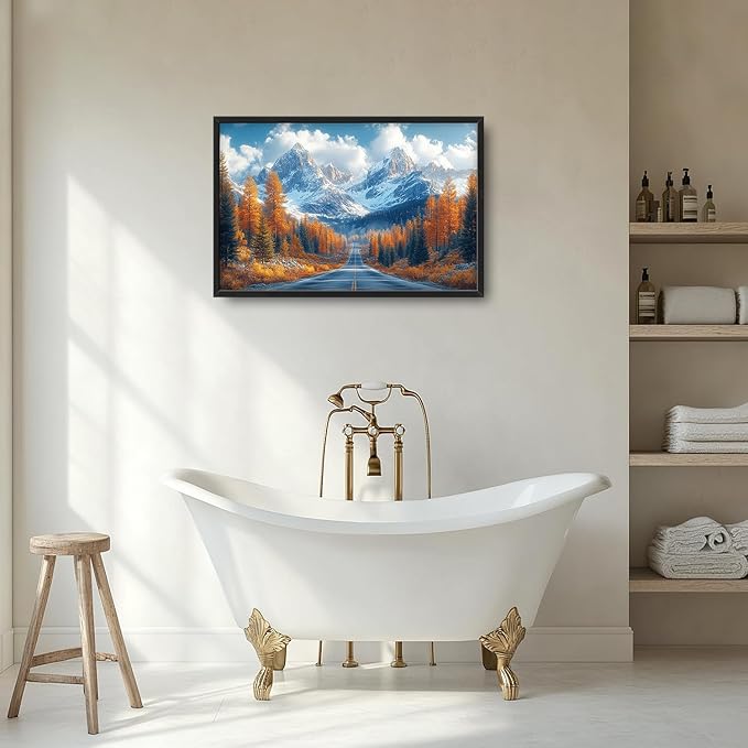 Large Forest Mountain Landscape Wall Art for Living Room, Nature Highway Road Scenery Canvas Oversized Wall Decor, Autumn Framed Pictures Painting Print Artwork for Bedroom Office 36"L x 24"W
