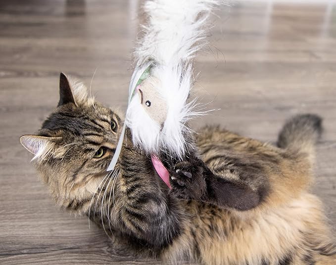 - FEEL OF REAL PREY: The touch-activated cat toy features a soft plush body, ribbons, and real feathers, mimicking the multitextured feel of real prey to stimulate your kitty's hunting instincts and further entice play