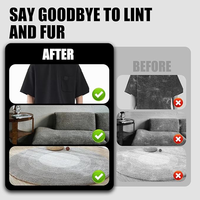 - 【Powerful Electrostatic Technology】Utilizes static electricity to effectively attract and trap pet hair, lint, and dander with a simple glide. No more tedious rolling or struggling with stubborn debris!