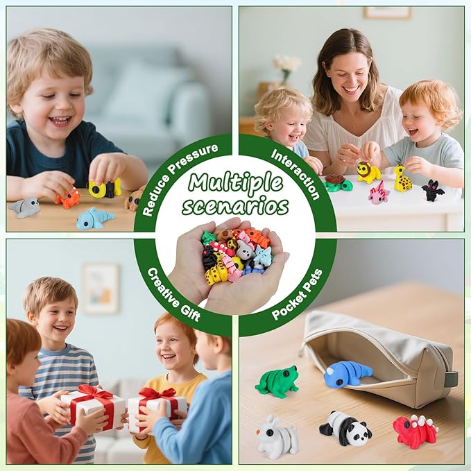- 【Flexible Articulated Design】: Each small 3D printed animals features movable joints for interactive play and fidgeting entertainment.The vibrant colors make these 3D animals stand out and are sure to catch anyone’s eye