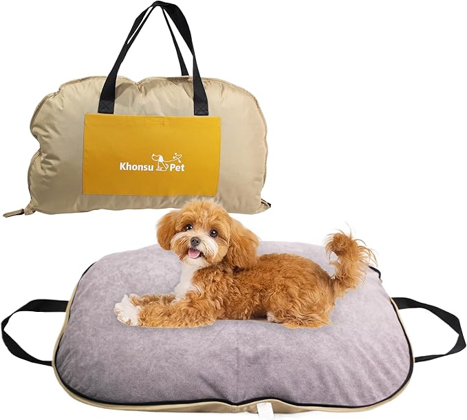 Portable Waterproof Dog Mat for Camping, Patio & Travel - Foldable Outdoor Dog Bed with Teflon Shell & Removable Plush Pad - Easy Clean, Durable - S (Khaki)