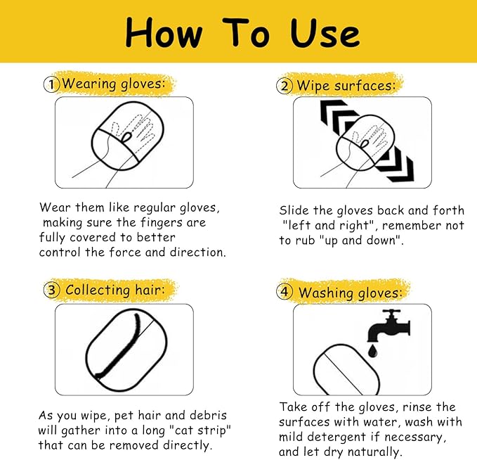 - 【Pet Hair Removal】Simply swipe to trap fur instantly! Our pet hair removal glove efficiently remove pet hair from fur, furniture, and clothing using flexible bristles that collect loose hair effortlessly—no tools or effort needed.