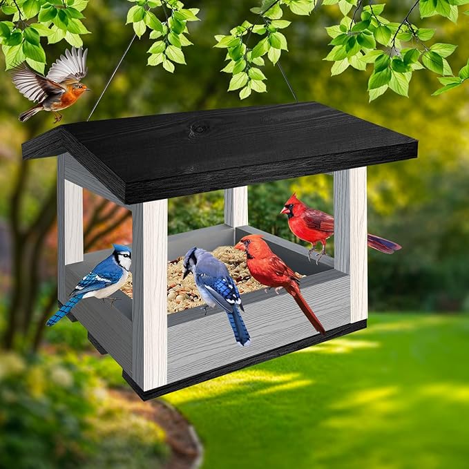 - π¦ [PERFECT FOR OUTDOOR USE] Designed to withstand outdoor conditions, this feeder is ideal for year-round use in gardens, patios, and backyards. The open tray dries quickly after rain, preventing soggy seeds and mold.