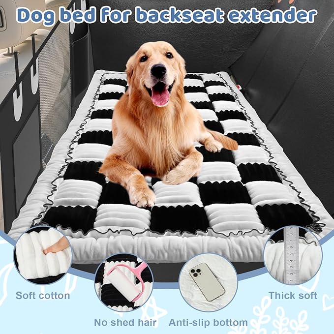 Backseat Dog Bed Mat for Car: 27.6" x 52" Non-Slip Dog Bed for Back Seat - Soft and Comfortable Dogs Blanket - Washable Travel Pet Mat Seat Protector Fit for Back Seat Cover, Grid
