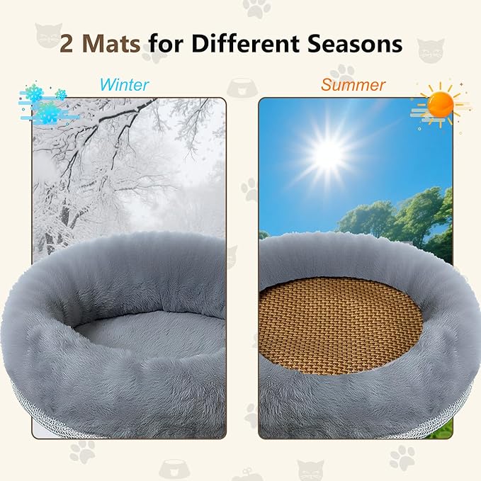 - Dual Mat Options for Year-Round Comfort: Keep your cat cozy in every season! The set includes a thick plush mat for warmth during colder months, plus a bonus rattan mat for summer. The thick plush padding locks in heat in winter, while the breathable rattan mat keeps your cat cool and sweat-free on hot days—ensuring comfort all year round