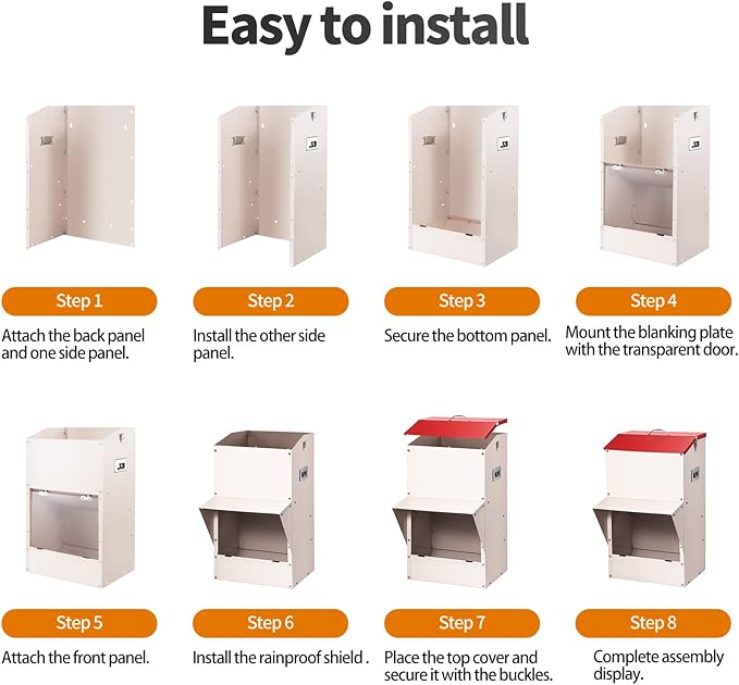 - 【Transparent Self-Feeding Door–Promotes Independent Eating & Easy Monitoring】This gravity dog feeder features a clear, durable front door that allows your pet to see the food and learn to self-feed by nudging the panel. The transparent design makes it easy for you to monitor food levels without lifting the lid. Designed for outdoor use, the gravity-fed door also helps block birds, rodents, and other animals from stealing or contaminating the food.