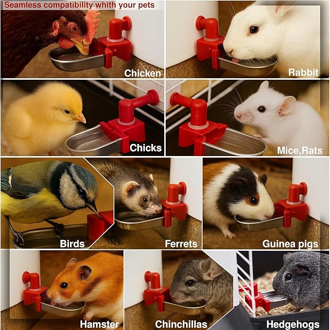 - ๐๐ณ๐ณ๐ถ๐ฐ๐ถ๐ฒ๐ป๐ ๐ช๐ฎ๐๐ฒ๐ฟ ๐ฎ๐ป๐ฑ ๐๐ผ๐๐ : Save time and reduce waste with chicken watering cups and diy waterer kit, ideal for poultry, rabbits,turkey,duck,ferret,rat, chicks, pets; the automatic watering system and drinking cups deliver clean water, lowering refill costs.