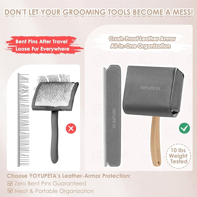 - Pro Grooming Duo: Start with the slicker brush to lift mats and loose fur from thick coats. Immediately follow with the stainless comb’s dual-width teeth to smooth the coat and remove residual hair from brush pins—complete grooming in half the time.