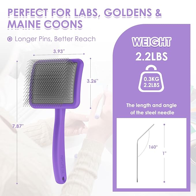 - Professional Slicker Brush for Shedding & Thick Coats: 22mm extra-long pins penetrate Doodle, Poodle undercoats to control heavy shedding—removes 2x more loose hair than standard brushes, ideal for Golden Retrievers, Huskies and curly coats.