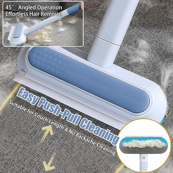 - 【Easy Maintenance】The large brush head features fine fibers that trap stubborn pet hair with ease. For tough buildup, simply use the included mini brush for quick cleanup. Both brushes are fully washable—just rinse with water to keep them fresh and ready for use. Pet hair through static adsorption technology—no electricity needed!Say goodbye to pet hair woes effortlessly!