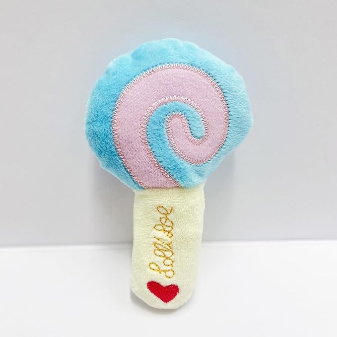 - VARIETY PACK: Set includes 4 adorable plush toys in fun designs - Blue stars, slippers, doughnuts, lollipops shapes for diverse play options