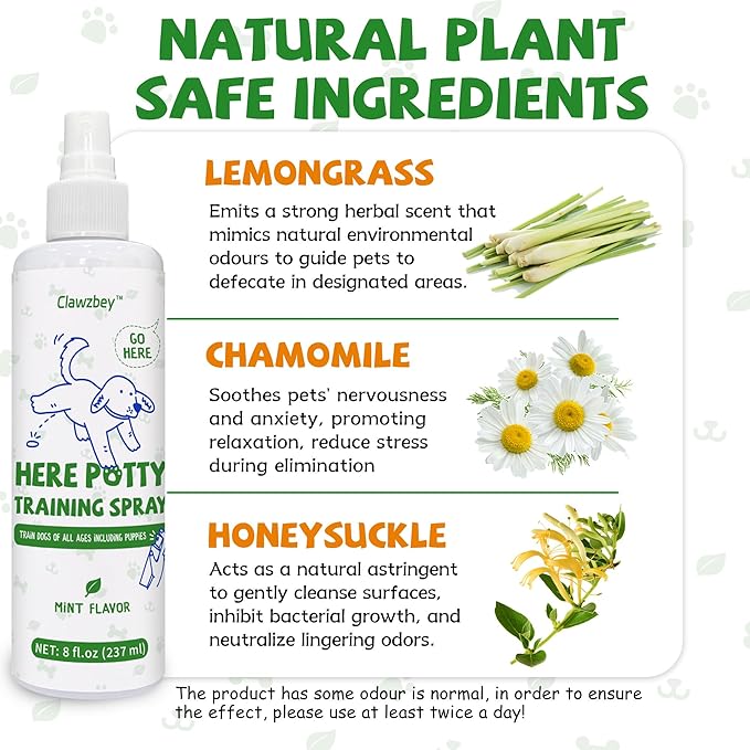 - EASY TO USE FOR NOVICE USERS: Convenient spray bottle allows for precise spraying, simply spray in prohibited areas and ideal pottying locations, whether indoors, outdoors, on puppy training mats, artificial grass or dog pee posts.