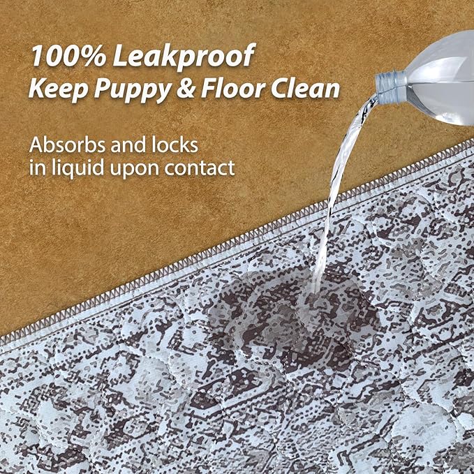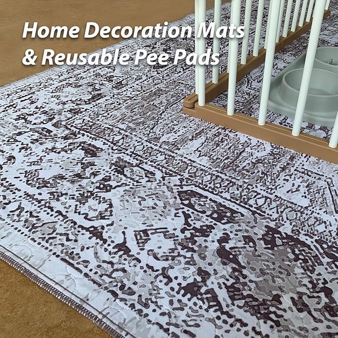 nunubaby Washable Pee Pads for Dogs, Stylish, Non-Slip and Leak-Proof Pee Pads. Reusable Potty Pads for Dogs for Crates and Floors.(Brown/Geo, 18" x24")