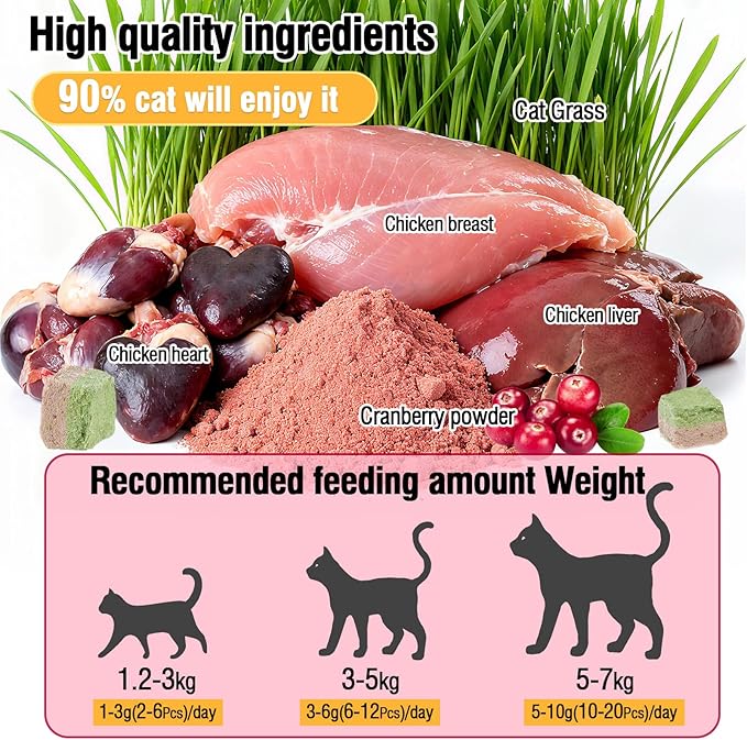 - Urinary Tract Support: Enriched with cranberries, a natural source of proanthocyanidins (PACs), these cat treats help maintain a healthy urinary tract. We've blended in high-quality chicken, heart, and liver not only for added nutrition but also for superior palatability that satisfies your cat's natural carnivorous instincts