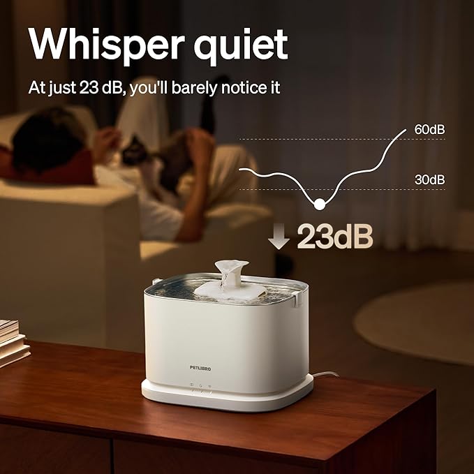 - Designed for Pets: Choose continuous or timed water flow modes in the pet water dispenser app based on your pet's needs. Cat water fountain's anti-knockover design can stand up to curious paws and frisky drinkers. Whisper-quiet operation of pet water fountain means you can even put it where you sleep.