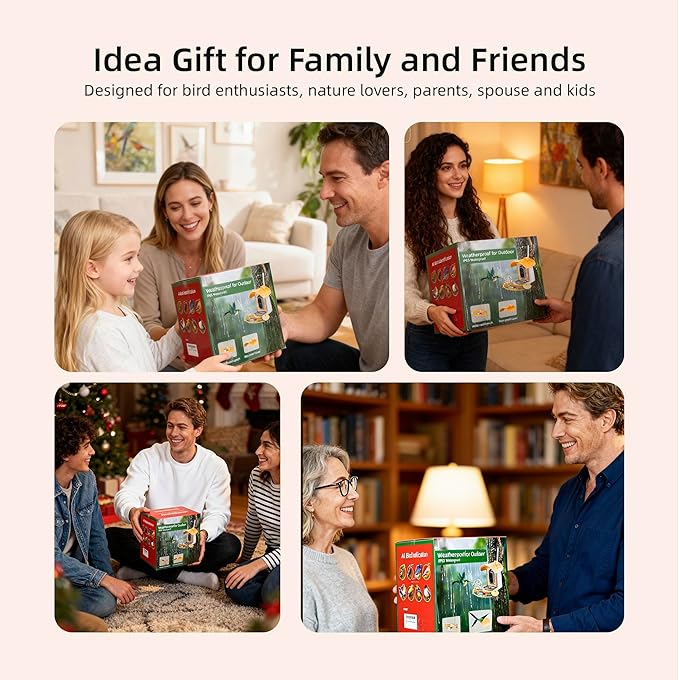 - 【Weatherproof and Bird-Friendly Design】Our birdhouse camera is professionally designed, IP65 weatherproof and bird-friendly design makes it a perfect home for your backyard birds. The large-capacity container can store enough food for birds, and also ensures that birds can eat dry food.