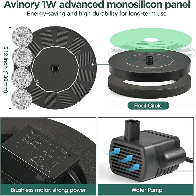 - 【EASY TO USE】Just put in the water, the pump will start to work in 3s once exposed to sufficient sunlight, perfect for bird bath, fish tank, small pond, pool, garden decoration, water circulation for oxygen.