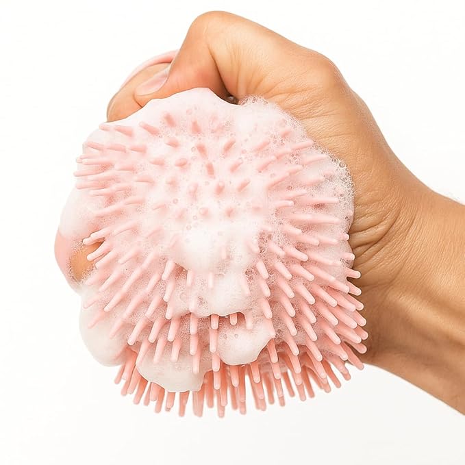 - 2-in-1 Bath & Grooming Tool: The built-in shampoo container releases soap as you scrub, producing bubbles while cleaning and massaging your pet in one step. This dog bath scrubber is designed for tidy and efficient use